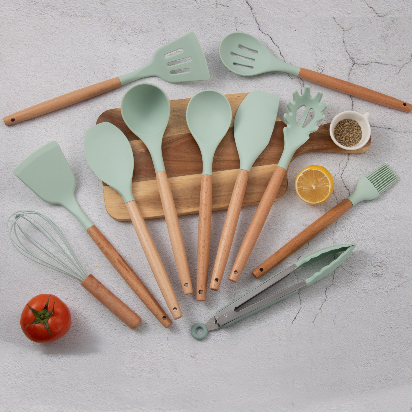 • Completo y versátil: incluye espátulas, cucharas, rasquetas, pinzas, batidor, cepillo de aceite y más, para cubrir todas tus tareas culinarias.